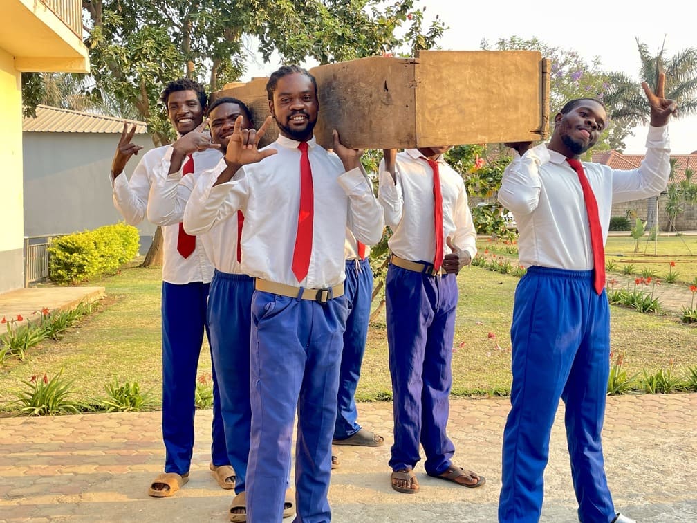 Стильные леди и джентльмены зажигают в строгих костюмах, так же есть костюм «милитари» и нашумевший танец с гробом из мема «Coffin Dance»